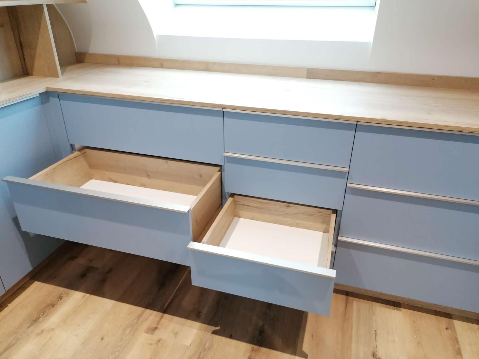 Chaque meuble est fabriqué dans notre atelier à Balazé, près de Vitré, puis installé avec soin par notre équipe. De la conception du plan à la pose finale, nous assurons un suivi complet et précis, avec des finitions soignées et des matériaux choisis pour durer.