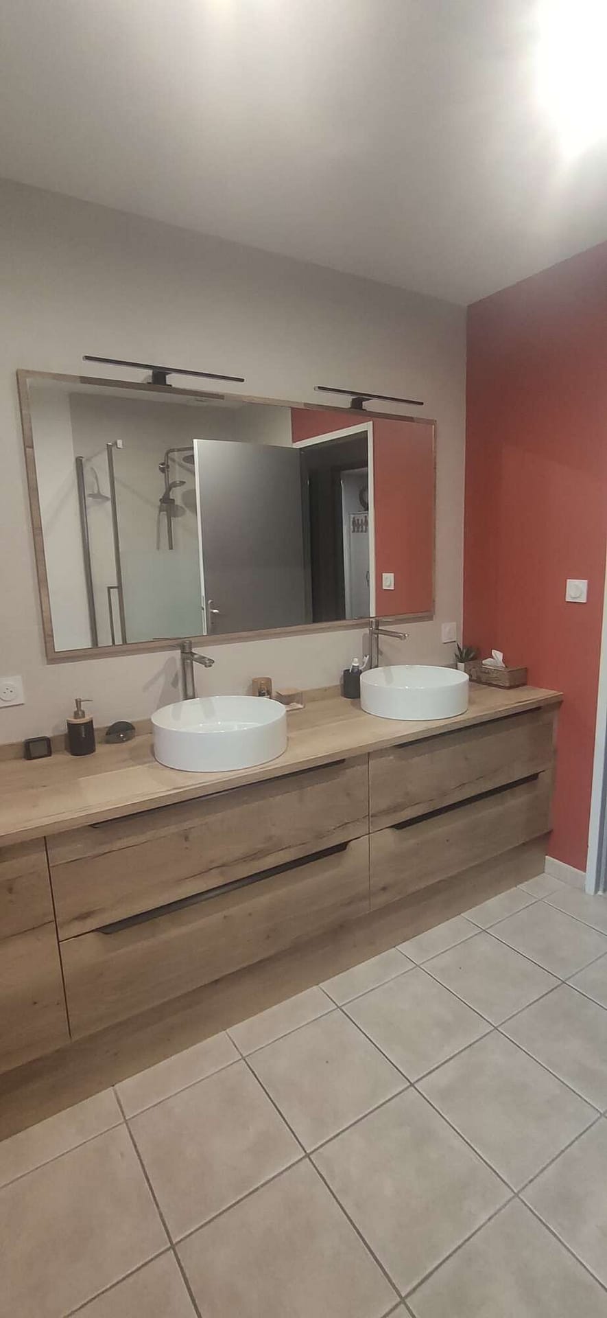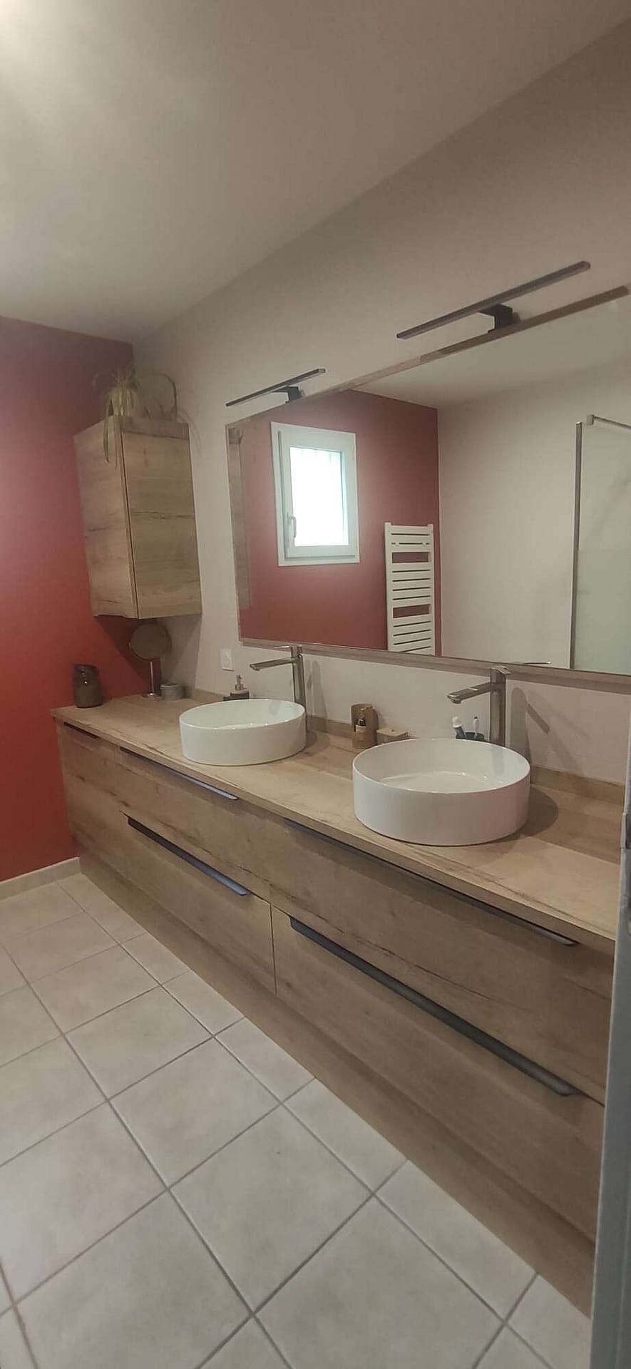 Nous réalisons des meubles de salle de bain personnalisés, pensés pour s’intégrer harmonieusement à votre intérieur. Plans vasques, colonnes de rangement, miroirs intégrés, niches murales ou aménagements sous pente : chaque projet est conçu pour optimiser l’espace et faciliter le quotidien.